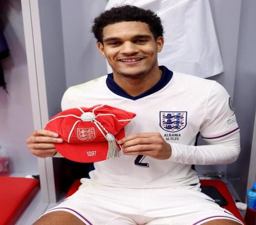 完成英格兰成年代表队首秀,夸安萨获赠纪念帽